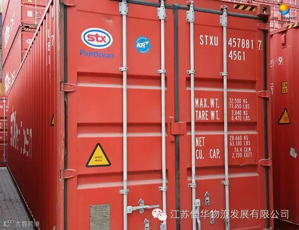 (1)额定重量和自定重量标记。额定重量即集装箱总重,自重即集装箱空箱质量(或空箱重量),ISO688规定应以公斤(kg)和磅(lb)同时表示。