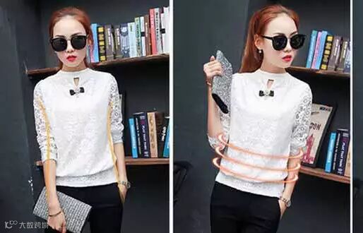 长袖大码蕾丝衫鹿皮绒拼接网纱打底衫