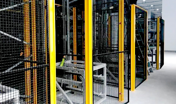 作为第一层保护,堆垛机和多层穿梭车货架、机械手臂、钢平台以及楼梯开口处全部配备安全围网,避免在维修或日常作业时发生安全事故。