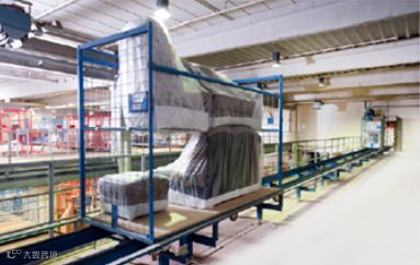 放在载具上的家具自动输送到系统入库口。前往自动化立库途中,每个载具经过识别点时,会进行识别和确认,检查是否超载。