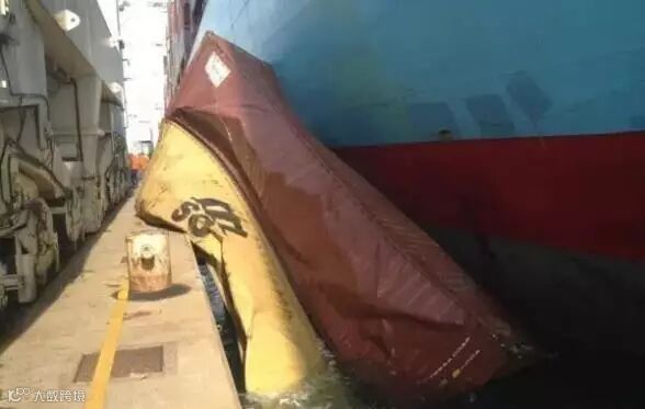事件:如图,二个集装箱落水,三个集装箱落在码头,总共五个完全损坏!