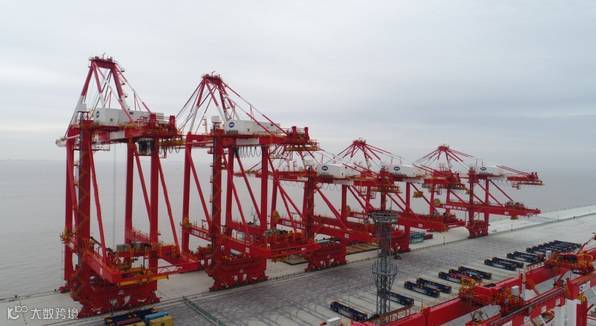 据悉,今年年内,洋山港四期将有10台桥吊、58台自动化轨道吊投入运营。预计再经过一年的努力,洋山港四期基本能实现400万箱的吞吐能力。
