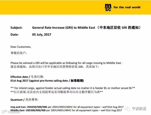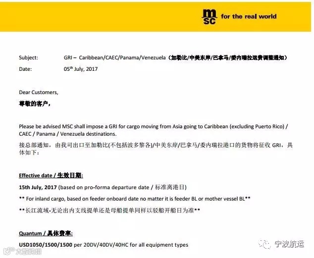 达飞 CMA征收旺季附加费通知 CMA欧洲线价格调整通知 MSC地中海 MSC关于南美洲西岸/墨西哥/中美洲西岸运费通知 MSC关于美国及加拿大运费通知 MSC关于加勒比/中美东岸/巴拿马/委内瑞拉运费通知 MSC关于中东地区运费通知 MSC关于澳洲地区运费通知