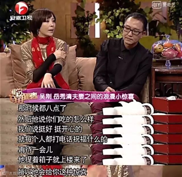 一次从云南拍戏回来,吴刚抱了一个大箱子回家,岳秀清看老公这次没给自己带礼物,有点不悦,结果打开箱子一看,竟然装满了勿忘我。