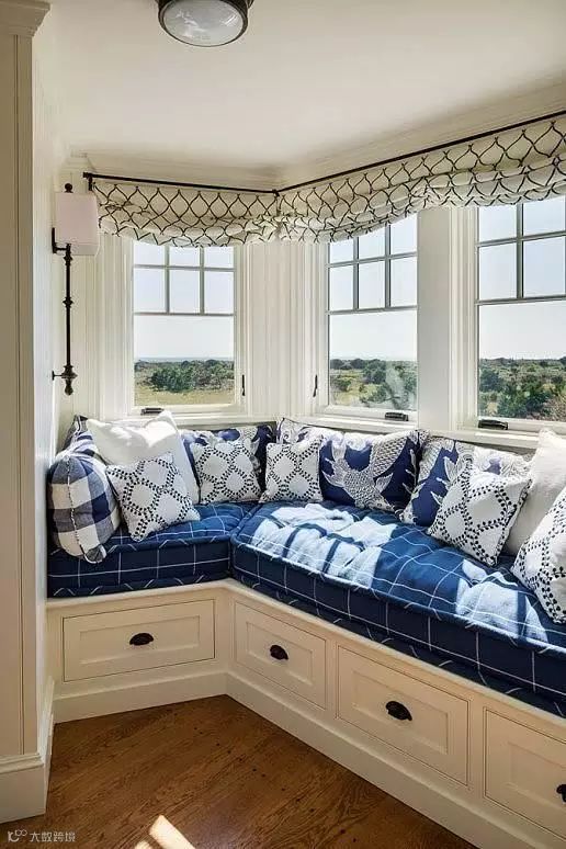 当然房子没有自带七字型的飘窗,也可以定做一个飘窗柜来打造假的七字型飘窗,这样下面也可以储物。