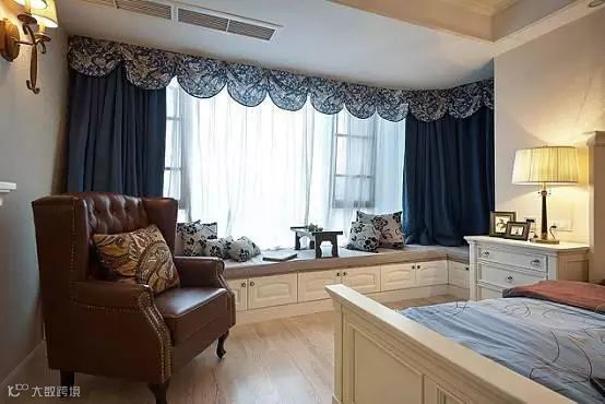 另外,七字型飘窗由于有直角,所以窗帘不宜使用罗马杆。想要完全的挡住阳光,就要利用吊顶和滑轨的配合来处理。