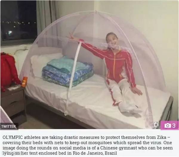 英国太阳报也震惊了,中国体操运动员坐在蚊帐内的图片在外国媒体广为流传。