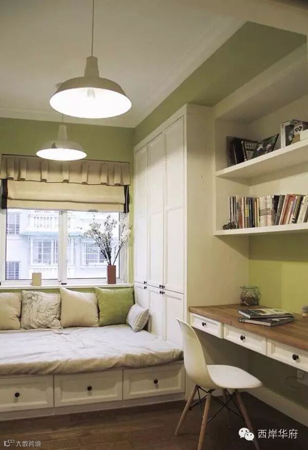 卧室的窗前,向来是被人忽略的地方,似乎做什么都不合适,所以,大部分时候被白白浪费。其实,下面做书柜最合适不过。因为书柜延续了窗棂的格子,一点都不会显得凌乱。