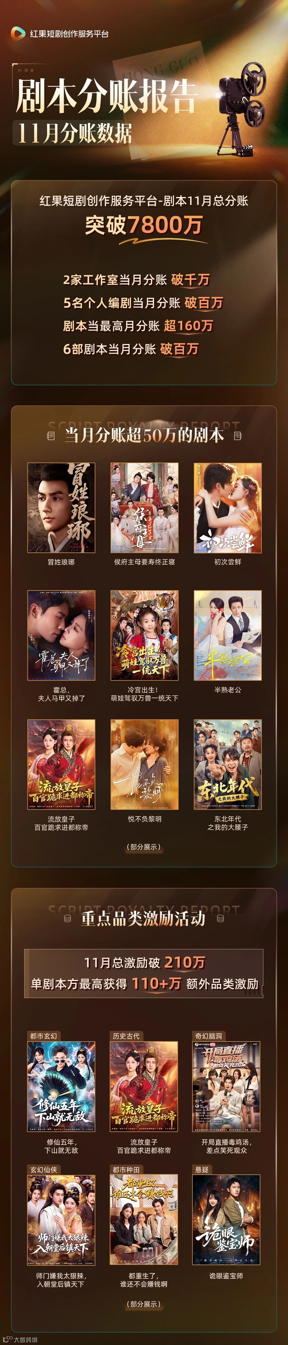 1. 红果11月剧本分账破7800万”