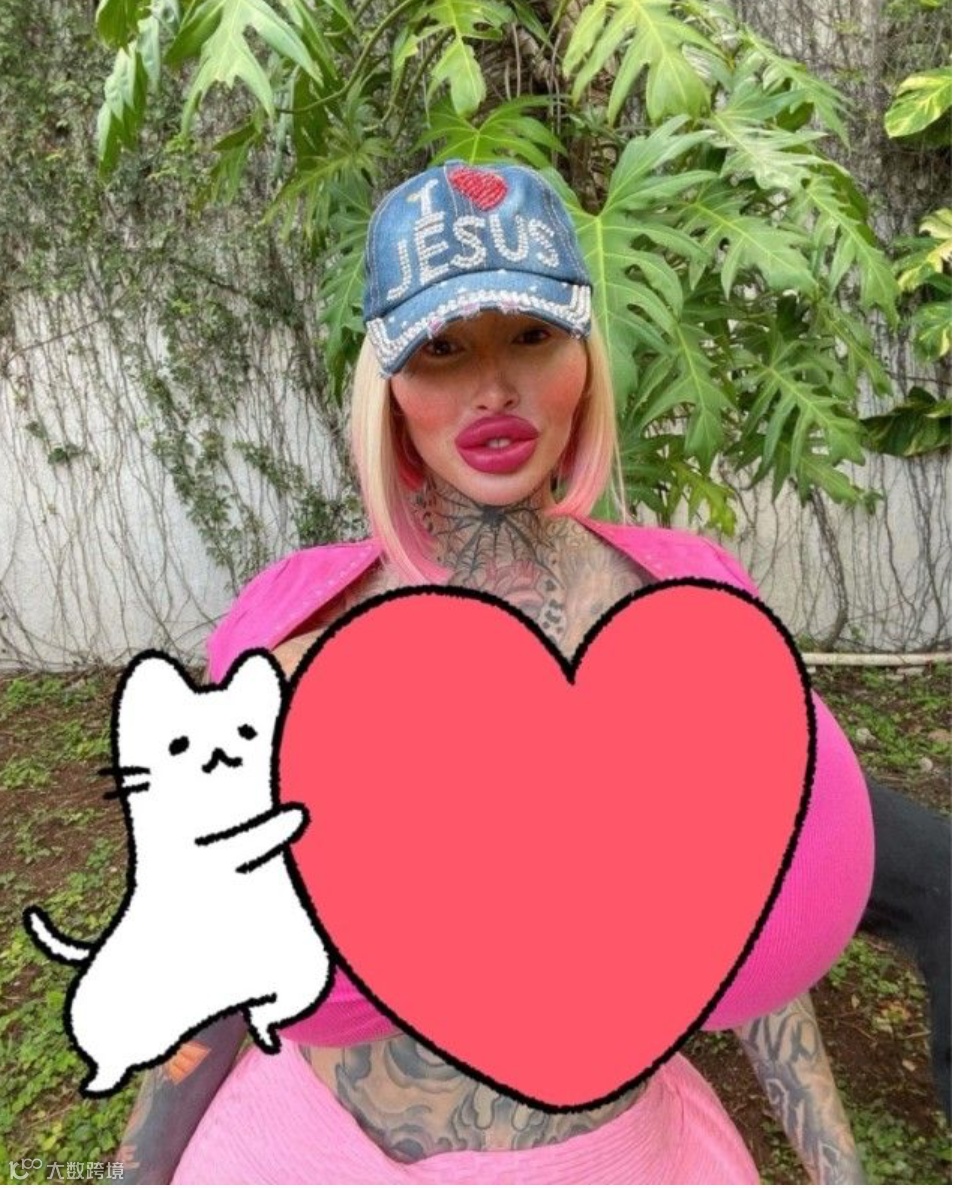 然而首次手术由牙科医生操刀,最终失败。此后她仍持续进行多项极端整形,包括隆鼻、提眉、抽脂、巴西提臀、阴部填充、牙齿贴面,甚至尝试眼球纹身。她痴迷“变异”造型与网络小说中的“末世异界女神”形象,并在社交平台分享改造过程,自称如“森林精灵”。