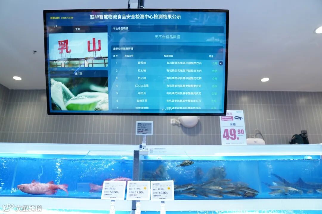 - 海鲜区:采用源头直采、冷链锁鲜与可视化保鲜技术,电子屏实时显示检测结果;主推雪辉无抗牛蛙,安全营养,适合全家人食用。
