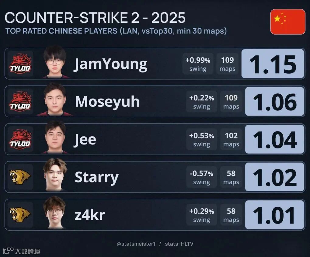 至少跟他一样从未选择过自暴自弃的CN CS,其实刚刚走过了稳中向好的2025。“御三家”TYLOO、LVG、RA都打进Major拿到了贴纸,TYLOO更是自建队以来首次问鼎国际大赛。与此同时,CS游戏本身的魅力所带来的用户粘性开始发力,明星选手呈现出破圈效应,国内的观众数量因而呈现触底反弹,最终掀起其他电竞项目中常见的追星狂热。