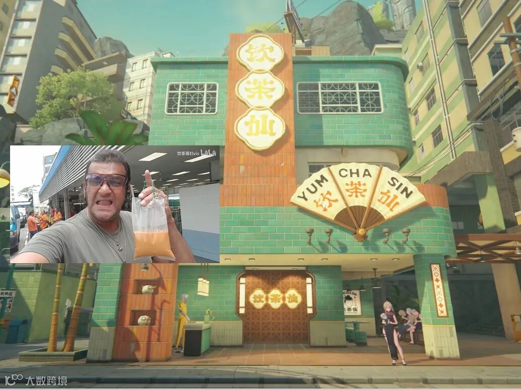 最突出明显的,就是“饮茶仙”了。该名词对应着粤语中的“饮茶先(先喝茶)”,前者语境文化中大致为“忙里偷闲”的意思,并且还与之前的网络热梗“三点几了,饮茶先”相呼应。所以,该场景一经上线,就被许多玩家看作是“卫非地”的标志性建筑,争相打卡拍照。
