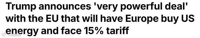 川普指出,此前他曾威胁对欧盟征收30%的关税,而此次达成协议后,美欧贸易将进行重新平衡。他称:“这将使双方关系更加紧密,实质上是一种伙伴关系。”