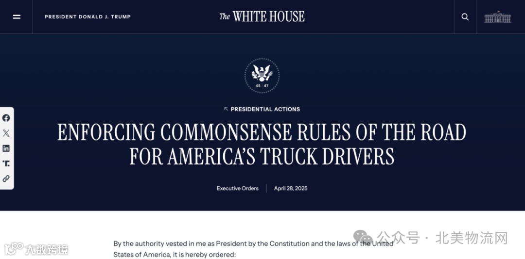 【北美卡车运输协会服务交流资讯】4 月 28 日,特朗普总统签署《为美国卡车司机执行常识性交通规则》行政令,要求彻底恢复并严格执行《联邦机动车安全条例》中,早已存在、但自 2016 年以来几乎停摆的英语能力(ELP)条款。