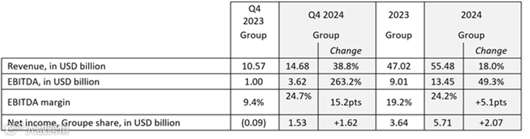 据公布的数据显示,2024年全年,达飞集团实现了总营业收入554.8亿美元,较上一年度增长了18.0%。在利润方面,息税折旧及摊销前利润(EBITDA)达134.5亿美元,同比增长49.3%,其EBITDA利润率也因此提升了5个百分点,达到24.2%。值得一提的是,2024年的全年净利润同比增长56.9%,达到了57.1亿美元。
