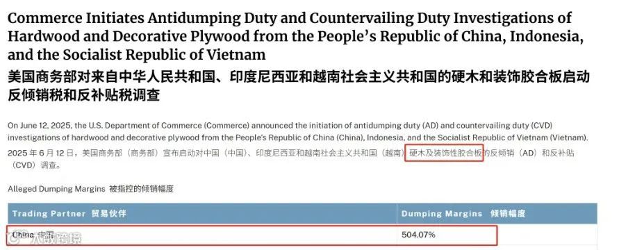 虽尚未公布税率,但参考此前硬木胶合板504.07%的高额反倾销税,预计此次税率仍将维持高位。中国相关企业需提前准备应诉材料,积极应对。