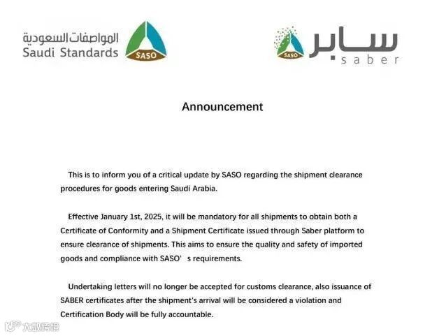 此前某些低风险产品允许通过承诺函替代认证,但新规明确取消了这种做法,所有货物必须获得SABER认证。