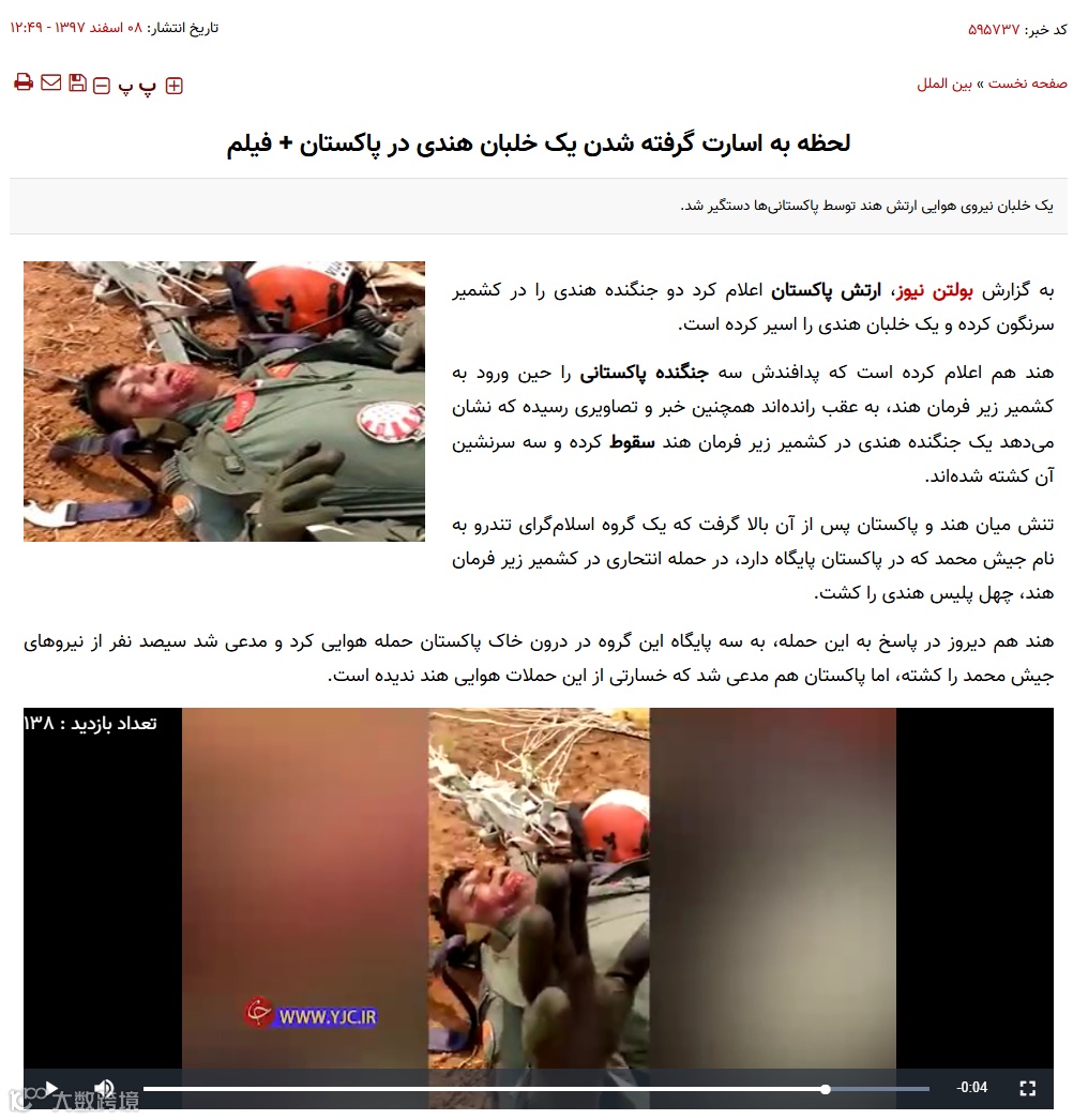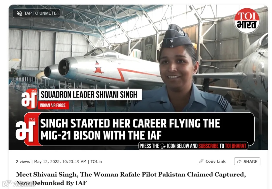 8.印飞行员被俘系假消息。5月10日,有媒体援引“巴基斯坦军方消息人士”的说法称,又有一架印度空军战斗机在巴基斯坦旁遮普省锡亚尔科特地区被击落。有印度飞行员被俘。印巴双方日前均表示,目前没有印方飞行员被巴方羁押。网传“近日有印度飞行员被巴基斯坦俘获”的说法不实。相关视频使用的素材为2023年印度教练机在南部坠毁现场的照片,与印巴冲突无关。社交平台上还传有另一段受伤飞行员流血倒地的视频,据称是驾驶“阵风”战机的印度飞行员被俘的画面。但经核查,这段视频同样不是在近日拍摄的,相关视频至少在2018年3月就已经在Bultannews等新闻网站上出现。