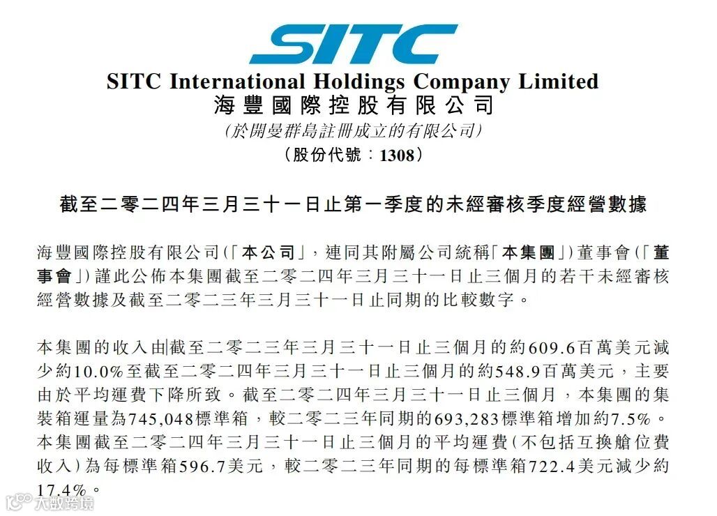 海丰国际在2023年实现了营业收入24.3亿美元,全年净利润约为5.4亿美元。面对全球经济贸易下滑、库存周期调整以及运力交付和行业竞争加剧等多重挑战,海丰国际的单箱平均运费出现了大幅下降。然而,公司凭借其差异化、低成本的战略,成功维持了较强的盈利能力,展现出稳健的经营实力。