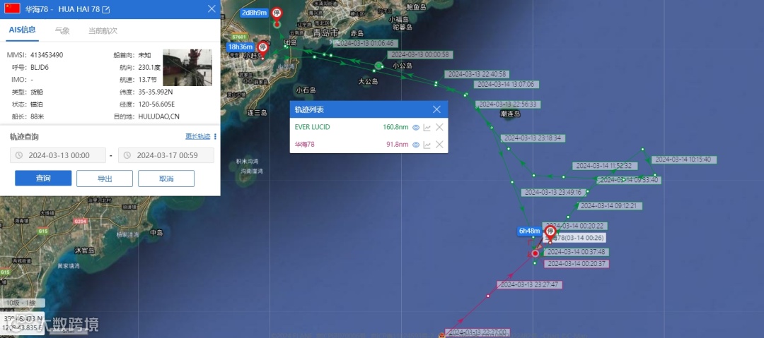 从青岛市海上搜救中心获悉,2024年3月14日凌晨,在青岛外海水域,集装箱船“EVER LUCID”轮与散货船“华海78”轮发生碰撞事故。事故造成“华海78”轮机舱进水,船上12名船员遇险。