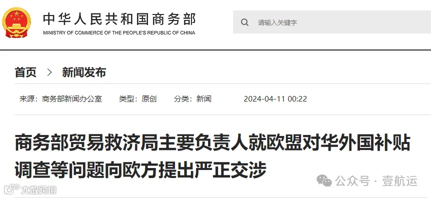 中方指出,4月9日,欧盟宣布依据《外国补贴条例》(FSR)对中国在欧盟五国的风力涡轮机供应商发起调查,这是近2个月内欧方利用FSR对中国企业发起的第4起调查案件。
