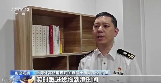 上海外高桥港区海关查验十科副科长 罗臻:实时跟进货物到港时间,及时协调监管场所各环节无缝衔接。今年前5个月,上海外高桥港区海关累计监管自东盟国家进口水果48.8万吨,货值9.76亿元。