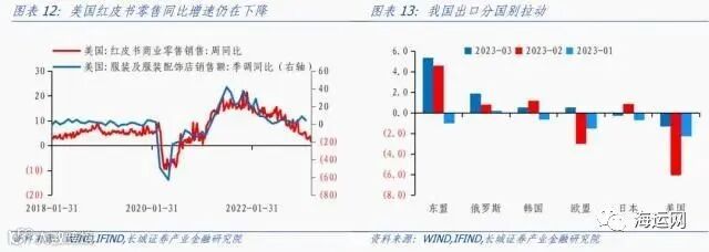 以劳动密集型商品为例,出口金额拉动出口增长大约4%个百分点。长城宏观就指出,这一回升更多是春节前积压的订单得到一次性释放带来的结果,而非外需回暖的拉动,所以往后劳动密集型产品的持续回升的可能性不大。当前看来商品外需并没有回暖的迹象,美国服装零售增速、美国红皮书零售销售同比均处于稳步下行趋势,并且越南服装出口增速也无明显回升,从这个角度看,我国服装等劳动密集产品出口增速仍将持续下行。