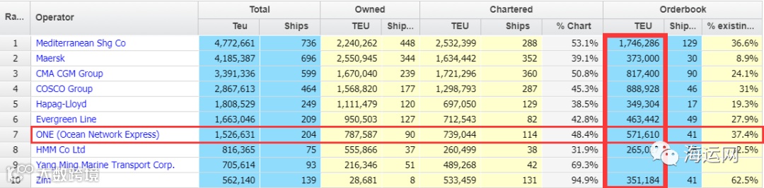 最新的订单将使世界第七大班轮公司ONE的运力突破200万TEU大关。目前全球在建集装箱船订单约占全球船队2660万TEU运力的30%,仅次于液化天然气船行业,未来三年亚洲船厂将大量建造新船。