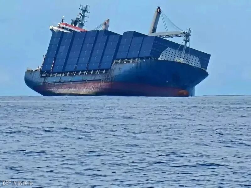 这艘从大连出发的箱船在高雄出现严重侧倾,19名海员紧急撤离