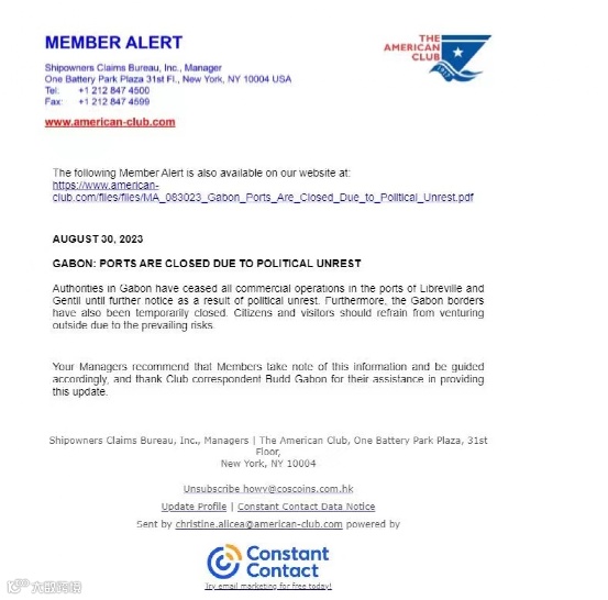 据英国海事安全公司Ambrey表示,受政变影响,利伯维尔的港口已停止运营,船舶无法出入,当局拒绝批准船只离开。数据显示,至少有30艘商船在加蓬水域抛锚,这些船只包括商业货船以及停在该国主要港口附近的油轮。