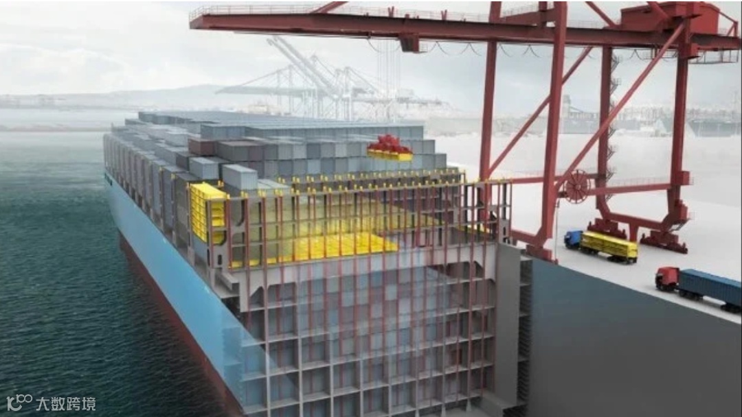 这也是全球首艘不需要进行集装箱固定作业的新概念集装箱船。