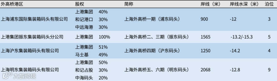 外高桥四期沪东码头在一期码头东南方向直线距离约7公里外,上海沪东集装箱码头有限公司是上港集团与马士基旗下的码头公司在上海共同组建的合资公司,分别持股51%和49%。借用跨国大型集团的国际港口建设管理经验,单四期码头的年集装箱吞吐量直超400万。码头陆域面积155万平方米,其中98万平方米堆场面积,可堆存集装箱约10万标箱。