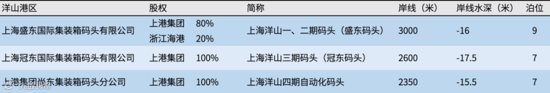 洋山港区一、二期码头由上港集团投资建立上海盛东国际集装箱码头有限公司运营,2019年浙江省海港投资运营集团有限公司增资入股盛东,现上港集团持股80%,浙江海港20%。配备了34台岸桥,120台场桥,可接卸全球最大型集装箱船靠泊作业,是全球最大的现代化集装箱单体码头之一。其中,一期岸线1600米,陆域面积134万平方米,集装箱深水泊位5个;二期岸线1400米,陆域面积88.83万平方米,集装箱深水泊位4个。