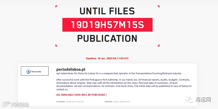 消息指出,欧洲最繁忙港口之一葡萄牙里斯本港(Lisbon)正遭受网络攻击,不法分子威胁要泄露港口财务信息机密,除非能满足他们所提出的赎金。葡萄牙媒体Publico引述里斯本港务局一份声明显示,证实该港在圣诞节当天遭到网络攻击,但表示仍能持续运营。