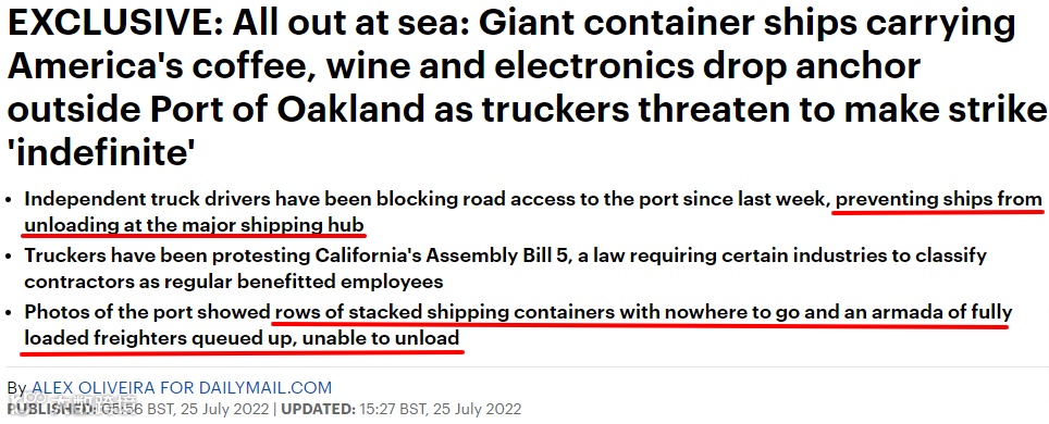 Daily Mail:巨型集装箱船在奥克兰港外等候,卡车司机威胁无限期罢工