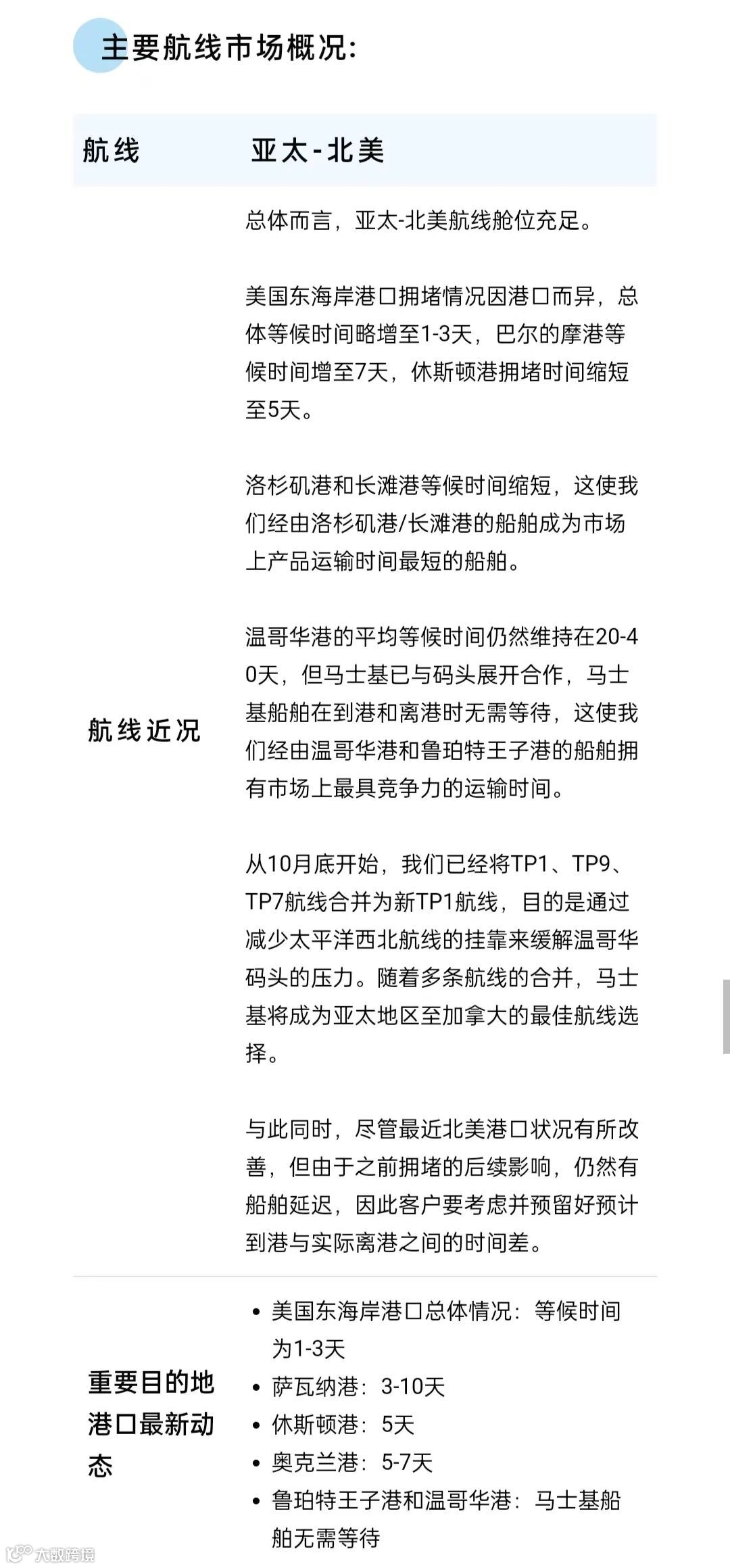 美国和欧洲的通胀压力仍然居高不下,消费者价格指数持续攀升。全球出口的减少导致全球集装箱贸易量的持续下跌,大多数地区现在仍然呈现负增长。远洋航线即期运价也持续大幅下滑。尽管美国西海岸和亚洲的港口拥堵状况已得到缓解,但美国东海岸仍然面临一定的拥堵。
