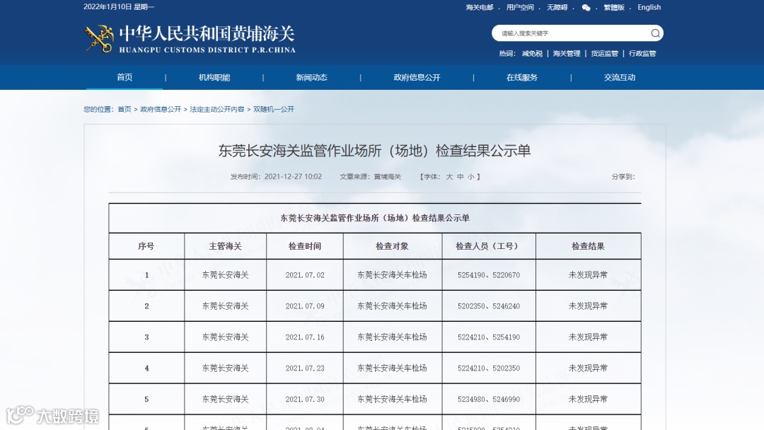 主管海关应在每次场所巡查结果确定后20个工作日内公布;抽查结果公布后有变化的,应及时更正。
