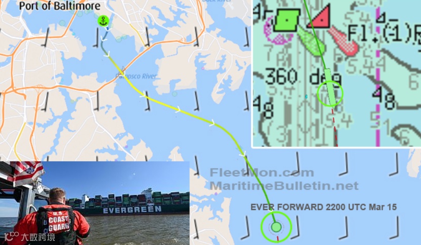 这回是EVER FORWARD“长程轮”在美国巴尔的摩港附近搁浅,正由当地相关部门紧急救援中。