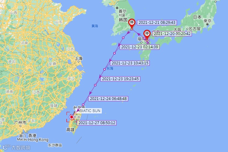 12 月 26 日 , 集装箱船ASIATIC SUN从台湾台北抵达台湾台中港时停靠在码头。船首/前堡严重损坏,一些 5-7 米的码头也被损坏或摧毁。ASIATIC SUN事故发生后靠泊,并留在港口。