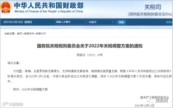 为完整、准确、全面贯彻新发展理念,支持构建新发展格局,继续推动高质量发展,经国务院批准,国务院关税税则委员会印发通知,2022年将调整部分商品的进出口关税。