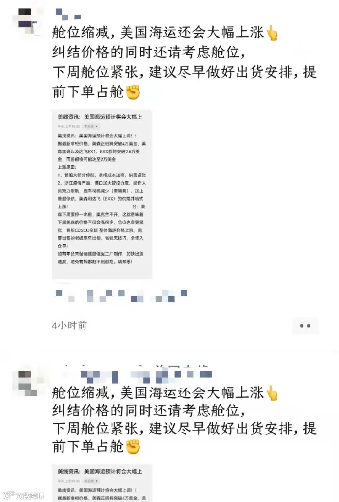 这周末已经陆续有货代发消息称,下周价格还将上涨。具体内容如下: