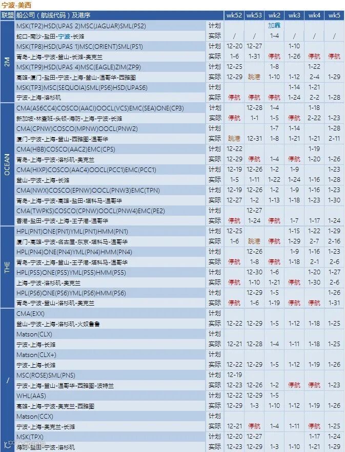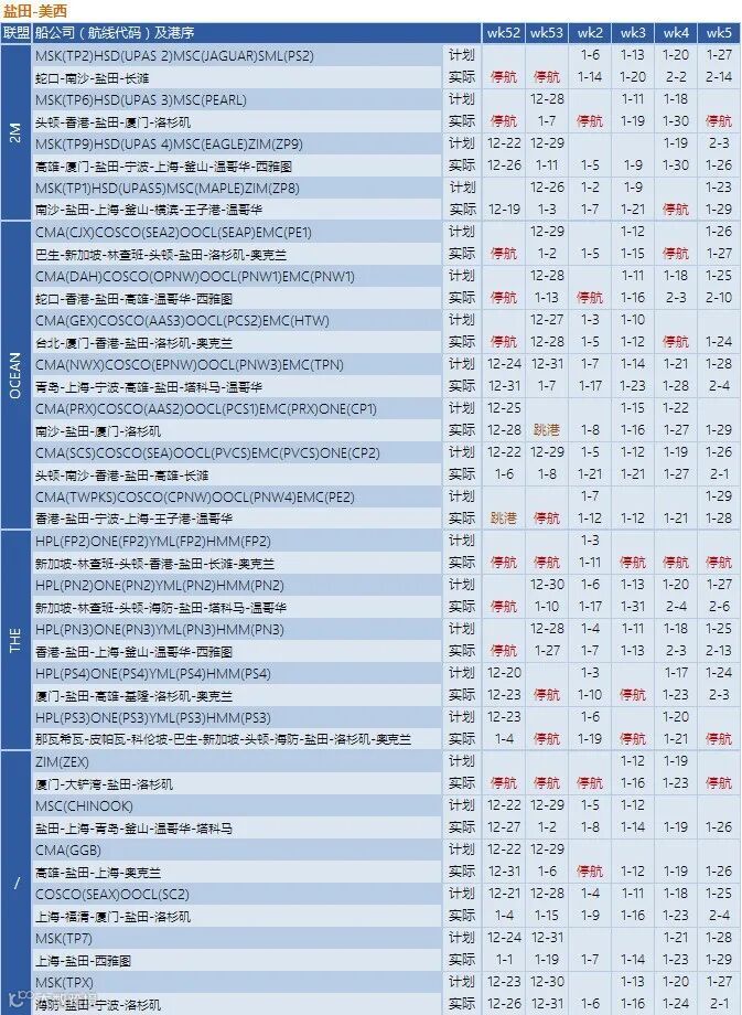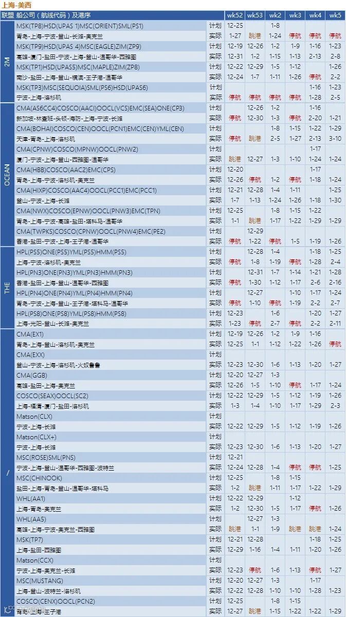 ✔ 美西停航跳港严重,促使运力紧张,造成运价上涨