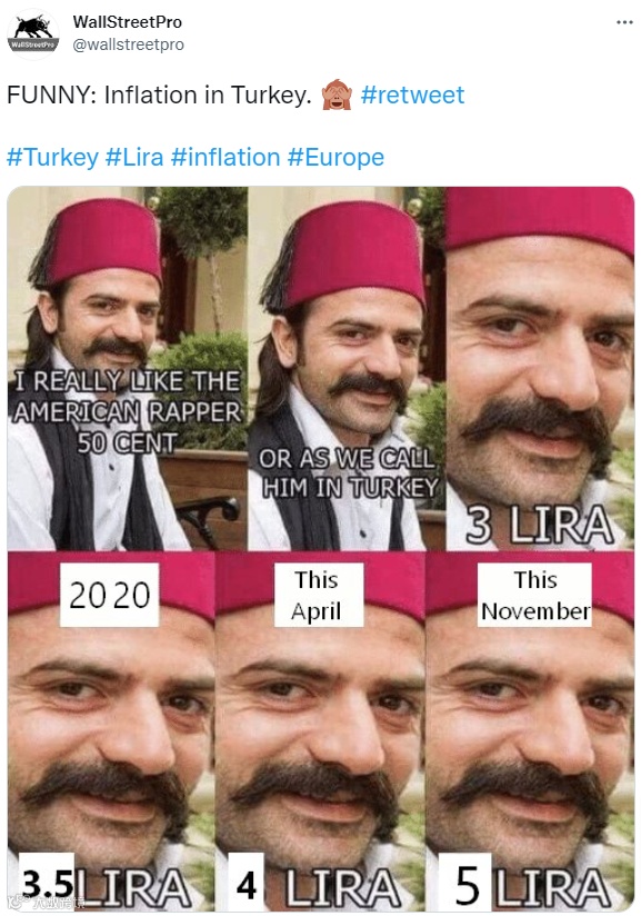 “土耳其的物价也涨太快了吧!我们都弄不清啥叫便宜啥叫贵了。反正没人跑得比通货膨胀还快。”