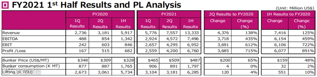 该航运公司在中期业绩公告中表示,尽管货运需求仍然强劲,但考虑到中国新年等季节性影响导致的货运量下降,预计本财年下半年将实现50亿美元的税后利润,有望在本财年全年实现117.6亿美元的税后利润。同时预测,截至2022年3月31日,本财年全年营收将达到254亿美元,高于去年的144亿美元。
