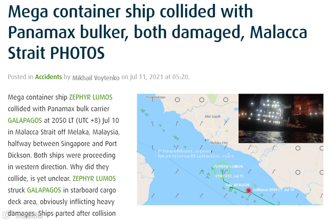 事故发生后,两船已经分离并锚泊。截至当地时间7月11日晚21时,两艘船舶依然在事故海域锚泊。