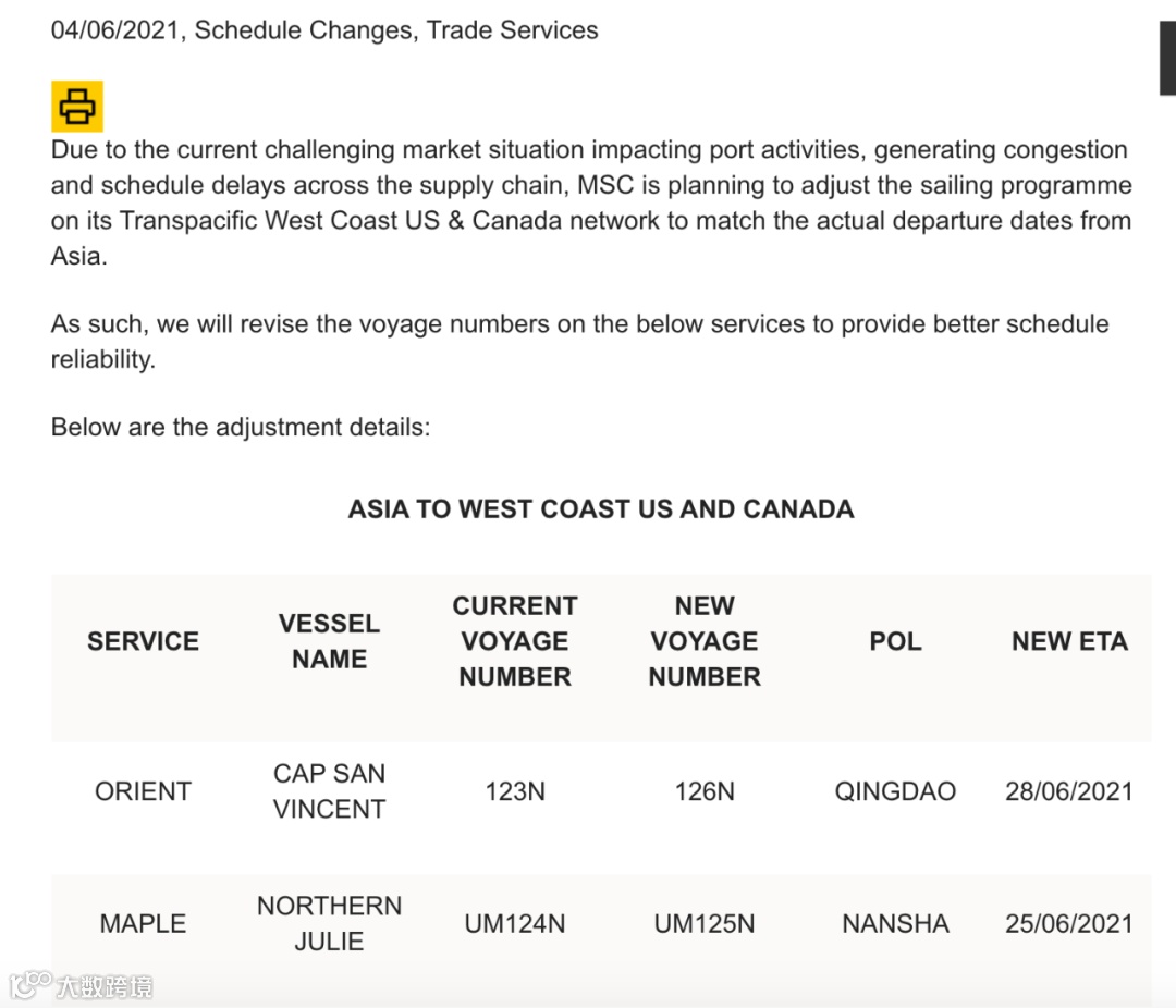 地中海航运日前发布公告表示,由于当前市场变化,造成供应链拥堵和船舶延误,为提升准班率,计划对跨太航线进行部分调整。
