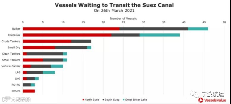 3 月 26 日,也就是船舶首次被困三天后,等待的船舶总数已经达到 169 艘。