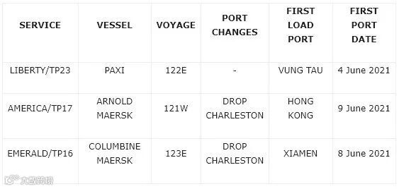 另外由于运营限制,马士基宣布将TP23航线的首艘航行推迟一周至6月6日。接受的预订将在现有网络上提供。