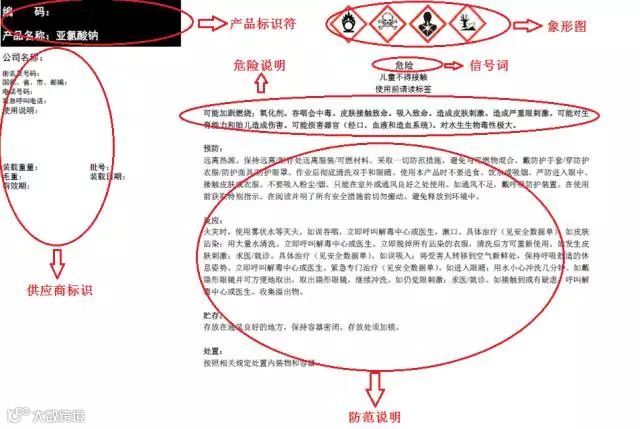 要素包括:产品标识符;供应商标识;信号词;象形图;危险说明和防范说明等
